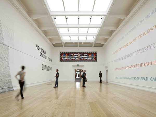 將24K純金的葉子圖像佈滿牆面、40公尺高的塔狀設計及5000字的電影劇本手寫在牆面上,來自世界各國的藝術家 Fiona Banner、 Lawrence Weiner 和Robert Barry十幾位藝術家,各自以不同的創意,共同在South London Gallery的新創空間中,書寫並繪畫出美麗但飄渺的永恆。