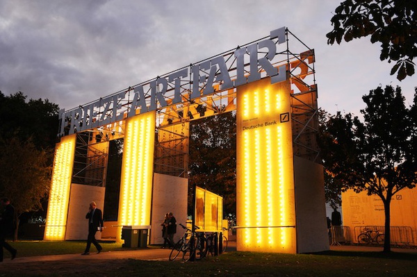 來了,來了!每年十月在Regents Park舉行的Frieze Art Fair是專注展出當代藝術及在世藝術家作品的大型售票藝術展。這將是世界最大的戶外藝術博覽會之一, 每年都吸引500家以上藝廊申請參展。Frieze Art foundation在2003年成立,同年開始舉辦藝術展。內容包括近兩百家的藝廊參展,以及Frieze Music、Frieze Film等當代藝術與音樂、電影跨界融合的創作。今年的活動由Sarah McCory擔任主要策展人,她也是主要評選藝廊的委員之一,雖然世界金融及景氣仍未恢復,今年的展覽卻仍然收到空前數量的參展申請。
