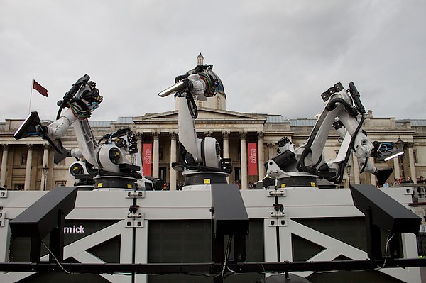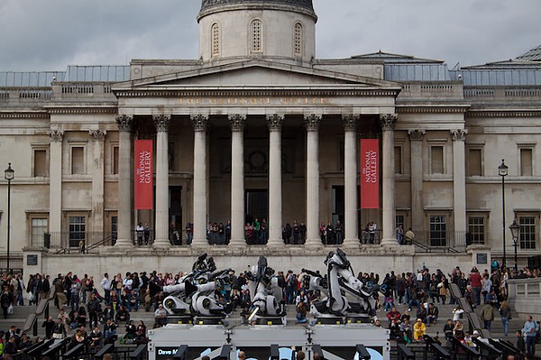 圖說:在國家藝廊前開闊的Trafalgar Square,由Audi贊助、Clemens Weisshaar & Reed Kram創作的大型工業機器人互動裝置Outrace