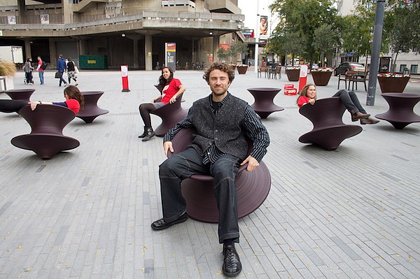 Spun Chair不但有趣,而且它的設計師來頭可大著呢!Thomas Heatherwick近期最知名的作品是世博英國館,目前可是倫敦設計界的當紅炸子雞。這些會旋轉的椅子看起視覺上擁有手拉胚陶器的細膩質感,實際上卻是十分堅硬的塑料製成,坐在上面時,Spun Chair可以像是旋轉咖啡杯一般的轉動,許多民眾都玩得不亦樂乎。