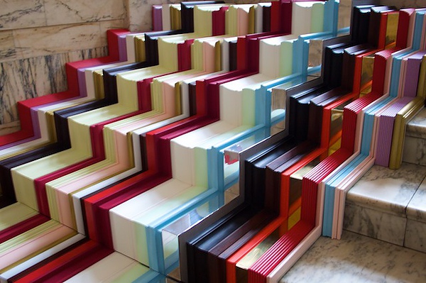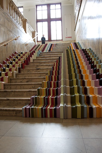 V&A博物館裡長達20公尺,氣勢磅礡的大理石樓梯,在設計師Stuart Haygarth的巧手之下,搖身一變成了一片流動著Paul Smith經典配色般的波浪。