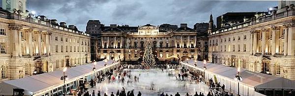 每年冬天在Somerset House中庭由Tiffany贊助的大型溜冰場,總是妝點的高雅浪漫,成為倫敦室內數個戶外大型溜冰場中最具有冬日童話夢幻風情的一個。自2000年以來,已有超過一百萬人次在這個冬季宮殿溜冰玩耍,這裡也成為冬季來到倫敦必訪的勝地之一。每到週末,Somerset House還會安排各類聲光效果俱佳的活動,像是週五晚間的DJ之夜、冰上胡桃鉗芭蕾演出、中午時段還有冰上舞蹈教練教你如何優雅的滑行舞蹈。最特別的是冰音樂演出,挪威冰樂器演奏家及作曲家Terje Isungset,使用完全用冰塊作成的樂器,演繹挪威風情獨具的樂音。