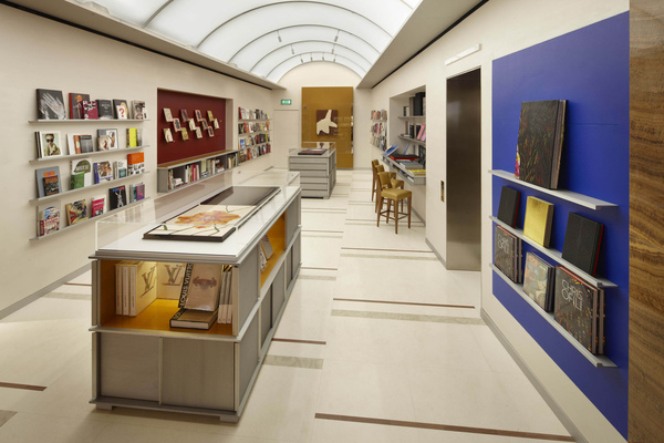 由玻璃階梯拾級而上,首先映入眼簾的是由著名形象指導兼編輯Katie Grand策劃的展覽,集結了Marc Jacobs歷年設計的女裝系列。而另一端珍藏一系列英國當代藝術叢書的Librairie書店,Peter Marino特別設計了拱頂天窗將陽光引進室內,營造舒適的閱讀空間,讓人輕鬆浸淫在Anish Kapoor, Chris Ofili 及Gary Hume等當代藝術家的藝術世界。
